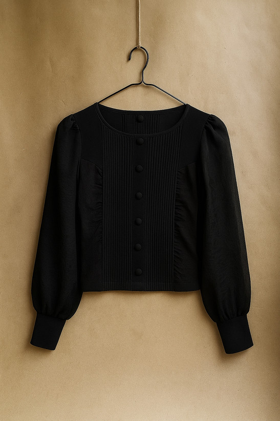 شومیز مشکی با طراحی چیندار و دکمهدار